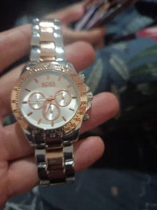 Elegante reloj de la marca BOSS con un diseño bicolor. - Combinación de tonos dorados y plateados. - Esfera clara con detalles. - Correa de eslabones.