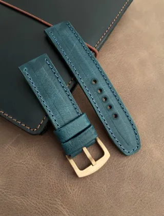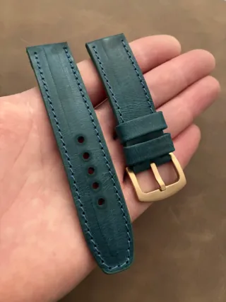 Correa de reloj de cuero de 22 mm con hebilla dorada. Un accesorio elegante y duradero. Cuero ternera,forro en flor Medidas : 128 - 76 mm. - Material: Cuero genuino. - Costuras reforzadas. - Hebilla de metal color oro.