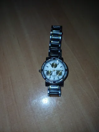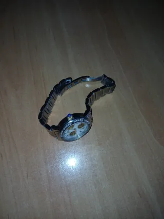 Se lo han regalado a mi hijo y no le gusta 🥹Elegante reloj para hombre con un diseño sofisticado. - Combinación de colores oro y plata. - Correa de metal resistente. Tiene brillantitos de imitación y el cronómetro es de pega.