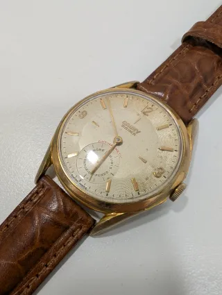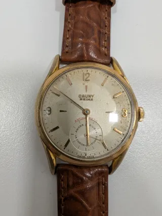 Reloj Cauny Prima en perfecto estado de funcionamiento. Bañado en oro de 10 micrones. Correa de cuero nueva. Diámetro de 36mm sin contar la corona. Una pieza excepcional para los coleccionistas.
