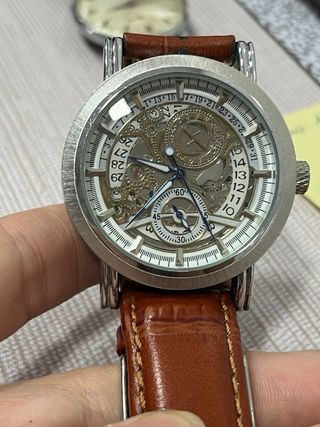 Reloj Goer Himdenburg Royal práctimente nuevo, de acero con correa de piel. Esta perfecto sin ningún arañazo. La correa en su interior tiene unas pequeñas manchitas de desteñido(se aprecia en foto).Reloj automático por lo que no necesita pila.