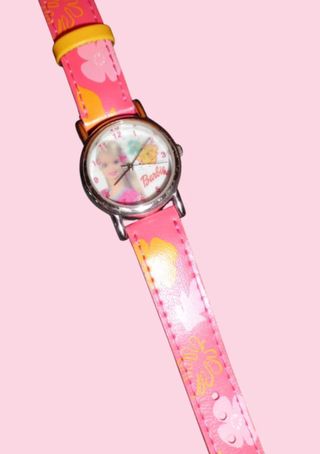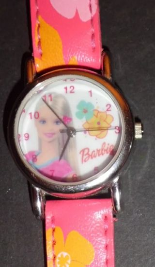 Reloj infantil con un diseño alegre y colorido, perfecto para los más pequeños. - Correa de piel sintética con estampado floral. - Esfera con imagen de Barbie y detalles florales. - Hebilla metálica para ajuste.