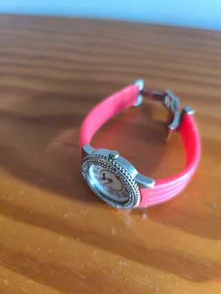 Precioso reloj de pulsera Caramelo para mujer. Es de color rojo y plata, con una correa de piel. Cambiar pila