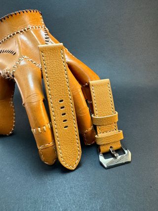 Correa artesanal de cuero para reloj, hecha a mano con atención al detalle. Elaborada en piel vacuna con acabado brillante que dará un toque detalle distinción a cualquier muñeca. - Material: piel vacuna vintage acabado brillo. - Hebilla: Plateada - Costuras: a mano en hilo encerado de 0,6mm de grosor. - Capa inferior en forro vacuno de calidad con grabado de la marca. - Medidas 22x20mm, 120x75mm.