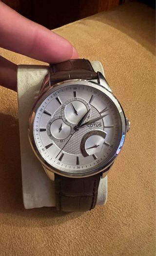 Elegante reloj Lotus con correa de cuero marrón y detalles plateados. - Esfera con múltiples subesferas. - Correa de cuero con textura. - Diseño clásico y sofisticado.