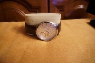 Se vende reloj Sandoz con correa de cuero. Nunca usado. Con caja y papeles. - Esfera plateada. - Correa de cuero marrón con textura. - Cierre de hebilla.