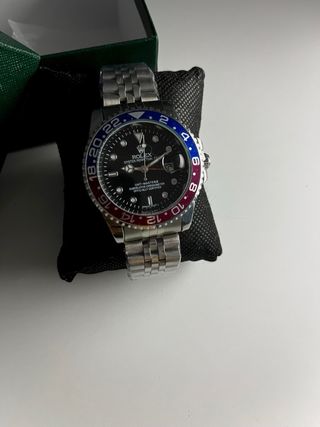 ⭐️Reloj plateado, rojo y azul de una gran calidad ✅Esfera negra ✅Correa ajustable ✅Bisel giratorio funcional ✅Lente estilo Cyclops ✅Cierre desplegable Envíos en 24-48 horas días laborables🚚🚀 Cualquier consulta no dudes en escribirme😄