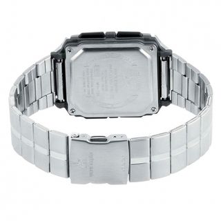 Colección : VINTAGE · Género : Hombre · Tipo Display : Analógico / digital · Movimiento : Cuarzo japones · Funciones : Alarma Cronometro · Estilo : Clasico · Color General : Plateado · Forma del Reloj : Rectangular · Color de Esfera : Plateado · Material de la Caja : Resina · Diametro de la Caja : 29 milímetros. · Grosor de la Caja : 5 milímetros. · Color de la Correa : Plateado · Material de la Correa : Acero inoxidable · Longitud de la Correa : Estándar para hombre · Ancho de la Correa : 18 milímetros. · Tipo de Cierre : Cierre de seguridad de caja con · Calendario : Día, fecha y mes · Cristal : Acrilico · Impermeable ,no