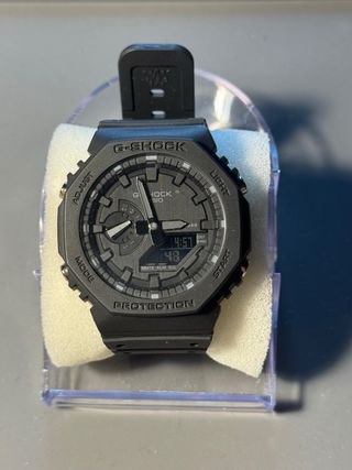Reloj Casio G-Shock modelo GM-S2110B-8AER en color negro. Incluye la tarjeta de garantía de compra en Baroli por 6 años. En perfecto estado, excepto que tiene un pequeño golpe tío, mirad última foto. Se incluye caja y papeles. - Diseño octogonal. - Correa de resina negra.