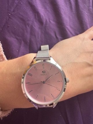 Elegante reloj de pulsera con esfera en tono rosa y correa de malla plateada. - Diseño moderno y minimalista. - Correa ajustable de acero inoxidable. - Esfera con acabado satinado. marca Marea, elegante y femenino, con esfera en color rosa. Está como nuevo, apenas usado, sin ningún defecto, funciona perfectamente. ✨ Características: • Marca: Marea • Esfera: rosa • Estado: impecable, como nuevo • Estilo: elegante y casual, ideal para el día a día o para regalar Se entrega tal y como se ve en las fotos. Si buscas un reloj bonito, cuidado y a muy buen precio, este es perfecto.