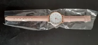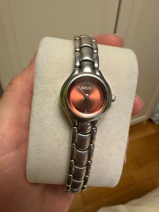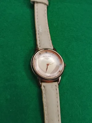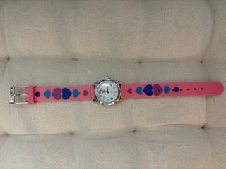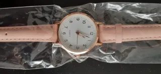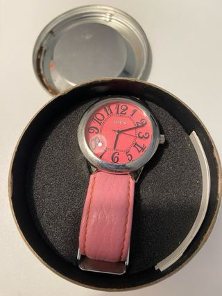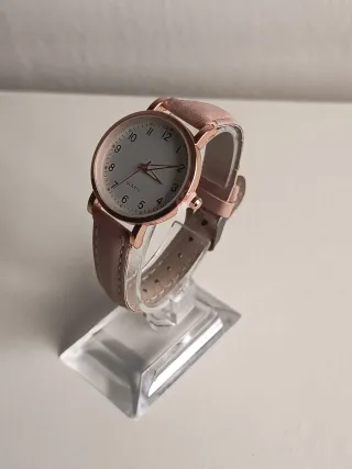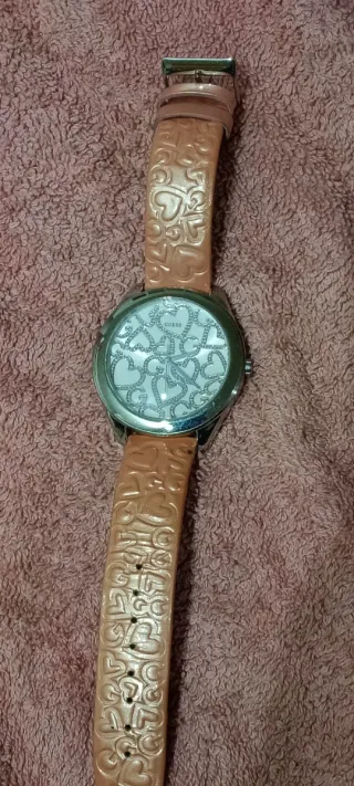 Reloj con correa beige y esfera en tonos rosados, con un diseño de corazón. Tiene la correa desgastada del uso y hace falta cambiarle la pila. Precio algo negociable. Hago envíos a todos lados y trato en mano en Málaga capital / Coín.