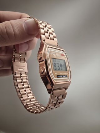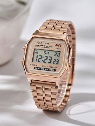 Reloj digital con un elegante acabado en oro rosa. Un accesorio moderno y funcional. - Diseño digital. - Resistente al agua (WR). - Correa de metal.