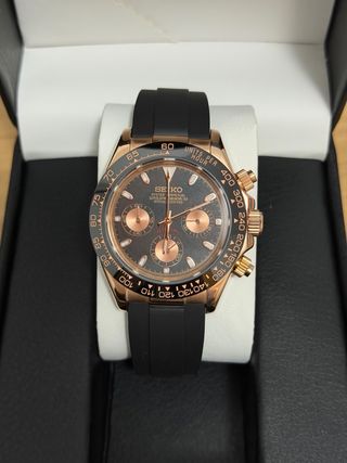 Elegante reloj Seiko mod oro rosa con correa Oysterflex. Movimiento vk63 con cronografo totalmente funcional. Envio rapido.