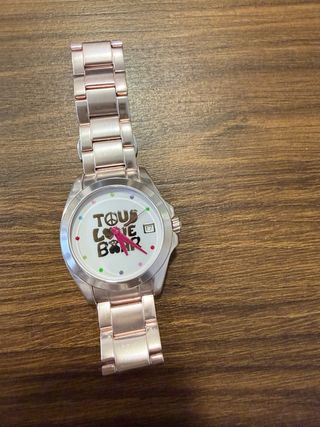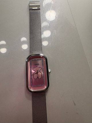 Elegante reloj de Tous para mujer con una esfera en tono rosa y detalles plateados.ojo..habría que revisar...no funciona..no se el motivo. - Diseño moderno y sofisticado. - Correa de eslabones plateados.