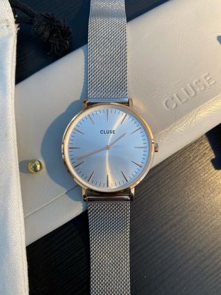 Elegante reloj Cluse con acabado en oro rosa. Incluye una correa de malla metálica y dos correas adicionales de cuero en color rosa. - Estuches originales - Acabado en oro rosa Solo entrega a mano en la zona de Puerto Santiago.
