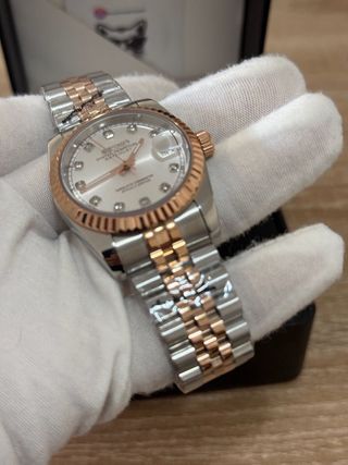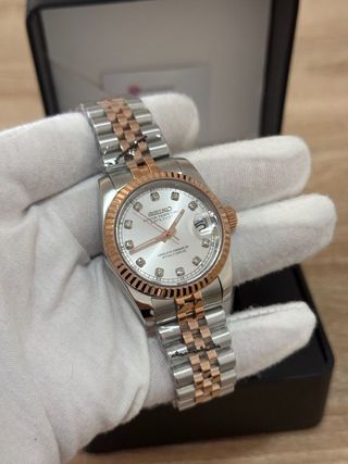 Reloj seiko mod datejust rose silver 36mm ,en dos tonos plateado y rose. -movimiento automatico seiko calibre nh35a - dial con circonitas . - Correa de acero inoxidable bicolor jubilee. -envio rapido en 12/24hs.
