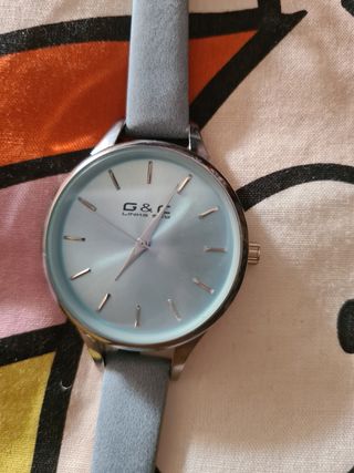 Elegante reloj con correa de cuero rosa y detalles dorados. - Esfera blanca con marcadores horarios en rosa. - Hebilla dorada. - Correa de cuero rosa. falta pila por lo demás bien