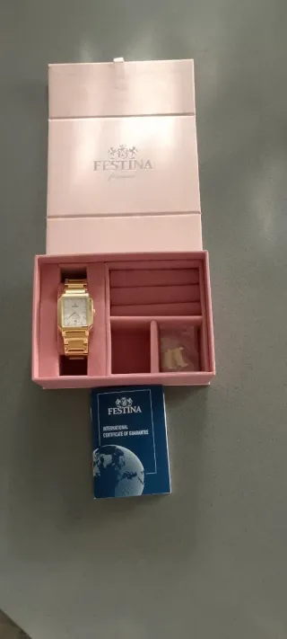 Elegante reloj Festina para mujer, a estrenar. - Diseño moderno y sofisticado. - Caja y correa en tono rosa. - Cierre de seguridad.