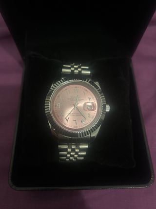 Elegante reloj CALCA con detalles en rosa y esfera plateada. Su diseño moderno lo hace perfecto para cualquier ocasión. - Correa de silicona gris. - Bisel texturizado. - Cronógrafo funcional. Precio negociable Más relojes en mi perfil