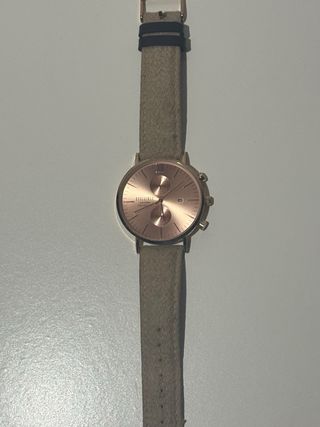 Precioso reloj de mujer, con una estética elegante y sofisticada. - Correa de metal. - Esfera de color rosa dorado. - Diseño minimalista.