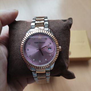 Reloj Mark Maddox esfera rosa y detalles dorados