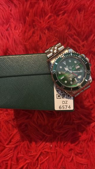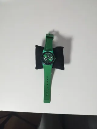 Reloj de pulsera con un diseño moderno y elegante. - Caja de acero inoxidable. - Correa de silicona en color verde. - Bisel giratorio. - Incluye caja original - Correa de repuesto, pero es necesario modificar el cierre.