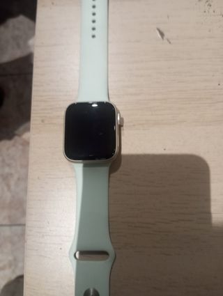 Reloj inteligente con un diseño moderno y elegante. - Correa de silicona en color verde menta. - Caja de metal en tono plateado.