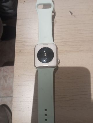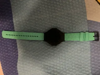 Reloj deportivo con correa de silicona en color verde menta y detalles geométricos. Con correal original y aparte correas de silicona. AVERIADO enciende con el cargador puesto - Correa con patrón de cubos. - Hebilla y pasador en color negro.