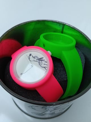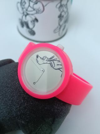 Set de reloj o clock con diseño de Pluto. Incluye dos correas intercambiables para personalizar tu estilo. - Correa de color rosa vibrante. - Correa de color verde brillante. Importante tiene una pequeña rotura visualizar bien la imagen. - Esfera con diseño de Pluto.