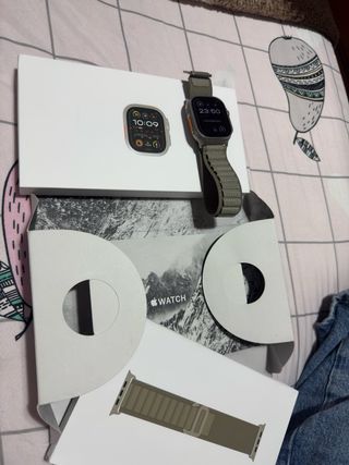 Reloj Apple Watch Ultra con correa deportiva. - Color verde y plateado. - Incluye caja original y correa adicional.