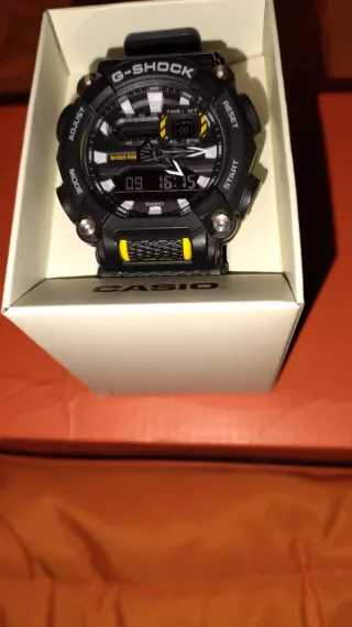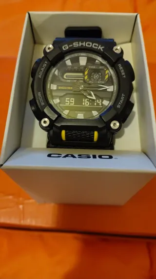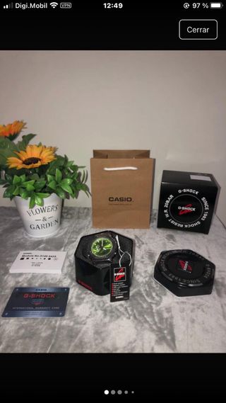 Reloj Casio G-Shock con detalles en verde. - Correa de resina negra. - Esfera con múltiples indicadores. - Resistencia al agua 20 BAR.