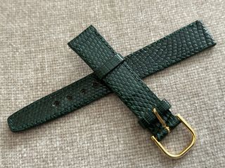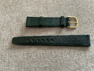 Magnifica Correa de reloj VERDE de PIEL DE LAGARTO. - Material: Piel de lagarto con textura. - Hebilla dorada. - Medidas : 16 mm - COMO NUEVA