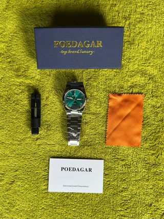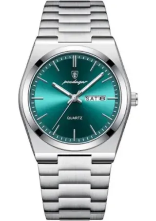 Elegante reloj Poedagar con una esfera de color verde vibrante y una pulsera de acero inoxidable plateada. Un accesorio moderno y sofisticado. - Diseño clásico con detalles modernos. - Acabado pulido en la correa.