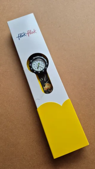 Reloj infantil Flik Flak con diseño de Cat Noir de Miraculous Ladybug. -Cierre de hebilla . -Diametro de 34 mm . -Resistente al agua 30 m. - Correa con estampado de Cat Noir. - Esfera blanca con detalles verdes. Hay que cambiarle la pila.