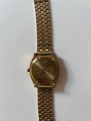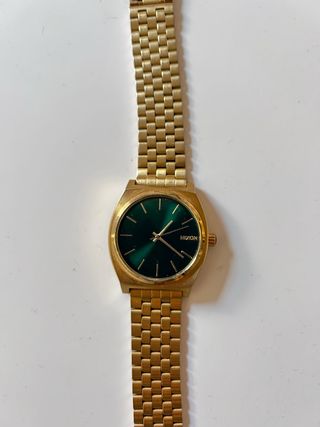 Elegante reloj Nixon Time Teller con un diseño clásico y moderno. Su acabado dorado y la esfera verde le dan un toque distintivo. - Correa de eslabones dorados. - Esfera de color verde intenso. - pilas recien cambiadas - sin caja