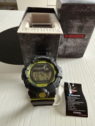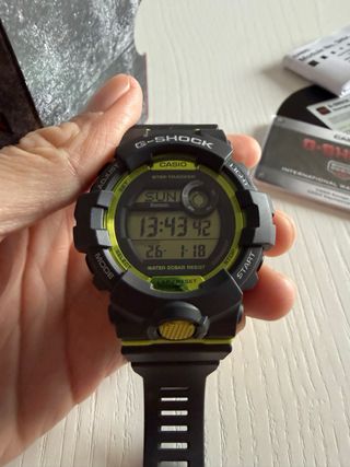 Reloj Casio G-Shock GBD 800-8ER con correa negra y detalles en verde. - Diseño deportivo y resistente. - Funciones de seguimiento de actividad. - Sin uso. Fue un regalo pero nunca se usó - Bluetooth - Sumergible 20 Bar