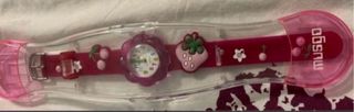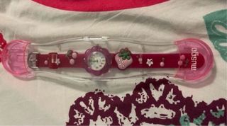 Reloj infantil con un diseño encantador, ideal para las más pequeñas. Viene nuevo y precintado, listo para regalar. - Correa de color rosa con adornos de fresas y cerezas. - Esfera con un diseño floral. - Cierre de hebilla ajustable.