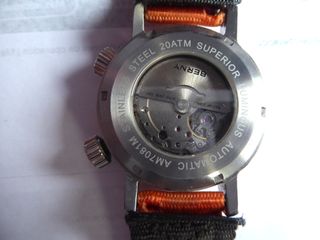 Reloj deportivo con llamativo dial naranja y correa bicolor. - Esfera con marcadores de hora luminosos. - Correa de tela resistente en naranja y negro.200 mts maquinaria miyota muy esacta y fiable esta como nuevo - Bisel giratorio y corona roscada