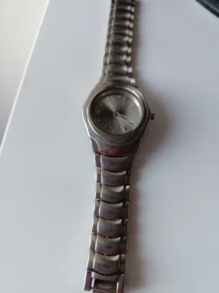 Elegante reloj Lotus con un diseño Smart Casual. - Caja y documentación originales. - Esfera de color verde intenso. - Correa de malla plateada nueva en perfectas condiciones. - Incluye una correa de cuero marrón adicional un poco más gastada.
