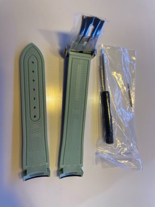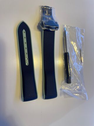Correa de repuesto para reloj con un diseño moderno y elegante. Con plástico y todo. - Hebilla de acero inoxidable. - Material de goma texturizada.
