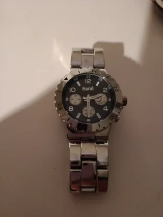 Elegante reloj de pulsera con un diseño moderno. - Esfera negra con detalles plateados. - Correa de eslabones plateada.