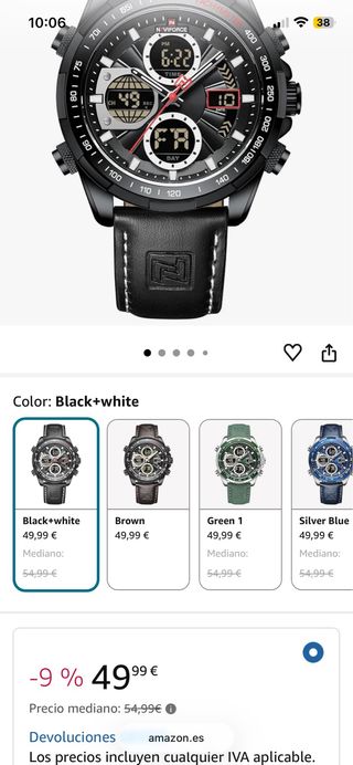 CRISTAL MINERAL El cristal mineral, duro y difícil de rayar, protege el reloj de daños exteriores. CORREA DE RESINA La correa contiene resina sintética, un material ideal para este componente dada su extrema resistencia y su flexibilidad. DURACIÓN DE LA PILA Aprox. 2 años (suponiendo una operación de cronógrafo de 30 min/día). CLASIFICACIÓN DE RESISTENCIA AL AGUA (10 BAR) Perfecto para nadar y bucear: el reloj es resistente al agua hasta 10 bar / 100 metros. 👇MÁS RELOJES EN MI PERFIL👇 ⌚⏱️⏲️⏰🕔