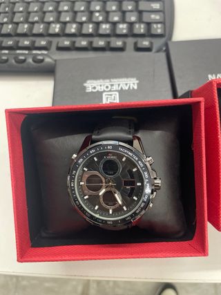 Reloj Naviforce con diseño profesional y detalles en blanco. - Correa de cuero negra. - Esfera con múltiples indicadores. - Resistente al agua.