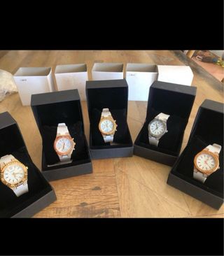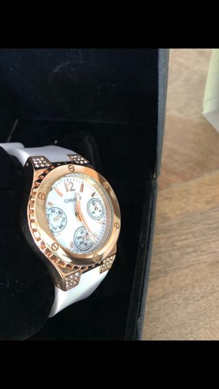 Se venden 227 relojes Cimara nuevos, sin usar, a un precio increíble. Cada reloj viene en su caja original. - 5 modelos diferentes de relojes con correa de silicona blanca. - Resistentes al agua (10 ATM). - Caja de acero inoxidable. - Entre 43 y 49 unidades de cada modelo. - Se incluye piezas de recambio. - Necesitan cambio de pila (precio rebajado por ello) ATENCION: ***MUY IMPORTANTE!!!: Hay que cambiarles la pila, por eso el precio tan rebajado****