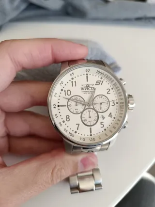 Reloj Invicta S1 Rally con diseño deportivo. Caja 49 mm. Movimiento de cuarzo japonés con cronógrafo y función de fecha. - Esfera blanca. - Correa de acero inoxidable. - Resistente al agua 100 metros. El reloj está sin estrenar, fue un regalo pero por su tamaño, no se ha usado. Se vende sin caja y sin documentación. Se enviará perfectamente protegido en una caja genérica.