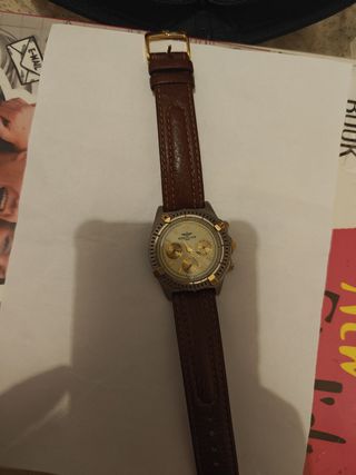 Reloj Breitling Tiene una correa de cuero marrón y detalles dorados. - Cronógrafo. - Correa de cuero.