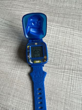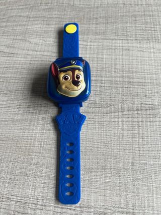 Reloj infantil con el personaje Chase de Paw Patrol. - Correa de color azul con detalles. - Esfera con imagen de Chase. - Cierre con botón amarillo.