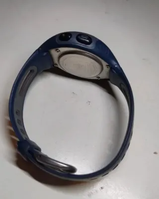 Reloj deportivo Nike Trike Bowerman en color azul. En buen estado, sin pila. La correa esta en un lado alhgo suelta. Pero con un poco de pegamento se arregla. NO DEVOLUCIONES - Correa de silicona. - Resistente al agua 100m.