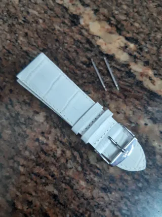 Correa de reloj blanca de 25 mm de ancho con 2 pasadores para su colocación, no es nueva pero está en perfecto estado
