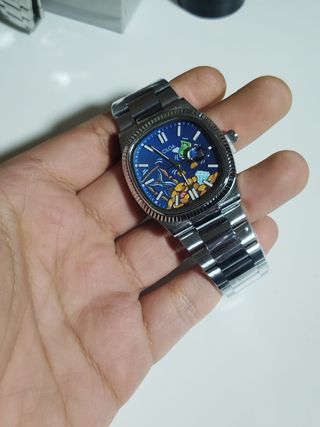 Edición especial Frank X Popeye, inspirado en relojes de alta gama. Un modelo llamativo y exclusivo, con brillo espectacular y mucha presencia en muñeca. ✨ Características destacadas: ✔ Caja 44mm de acero inoxidable engastada con circonitas tipo diamante de alto brillo ✔ Dial azul edición Popeye, diseño exclusivo y muy llamativo ✔ Fecha funcional a las 6 🗓️ ✔ Movimiento de cuarzo ultrapreciso, pila nueva (≈2 años de duración) ✔ Correa de silicona de alta resistencia, acabado efecto piel, cómoda y duradera ✔ Resistencia al agua 30 m 💧 (uso diario sin problema) ✔ Incluye caja de presentación 🎁 ✔ Totalmente nuevo, sin usar